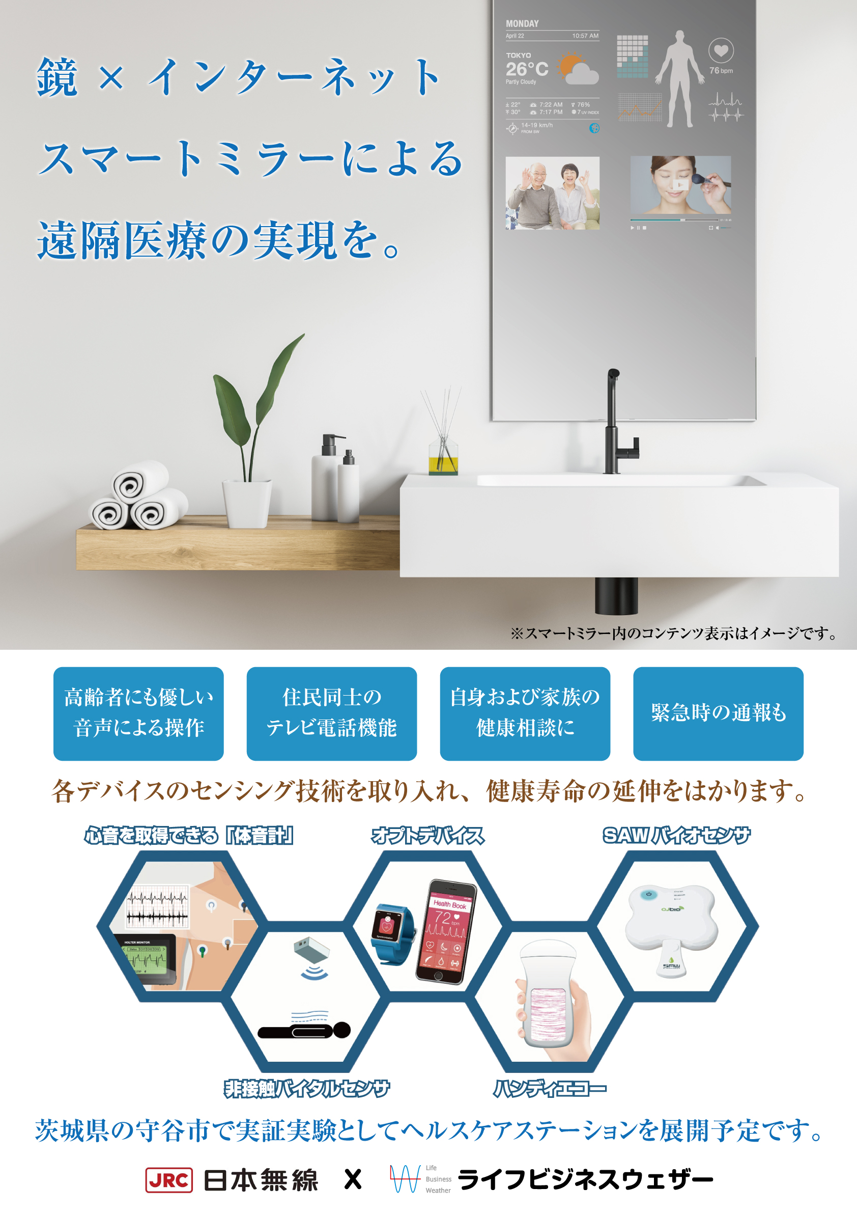 健康みはりは、毎日の健康をみはる、次世代のヘルスケアプラットフォームです。利用者が入力したり各種のセンサで取得したりした生体情報と、その日の天候状況を踏まえ、利用者に健康・生活のアドバイスを提示する機能を備えています。